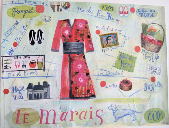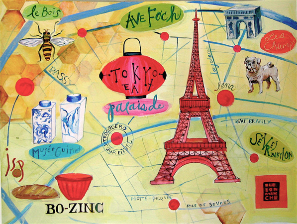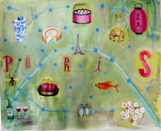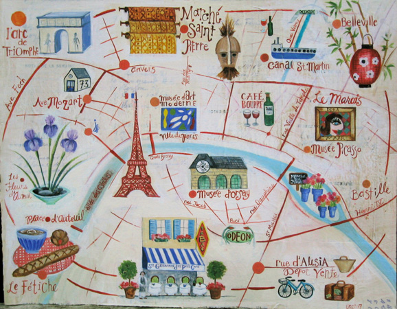 Monica's Paris Map, 2007 12x15. (Sold)